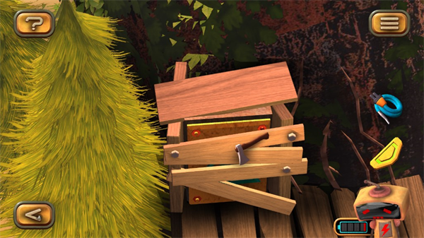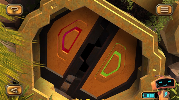 1、在图左下角发现一个电池,点击收集后,机器人增加电量
