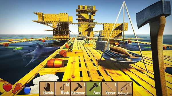 从水中收集碎片来制作必要的设备。建立斧头,锤子,绳子和其他东西,创造新的墙壁,支柱,庇护所。拓展你的木筏,为自己创造更舒适的生活。通过烹饪食物和过滤海水来维持你的健康。警惕海洋的危险!尤其是鲨鱼来摧毁筏和咀嚼你!游戏有一个先进的手工艺系统,将是有趣的人谁爱手工艺,建筑以及生存游戏!