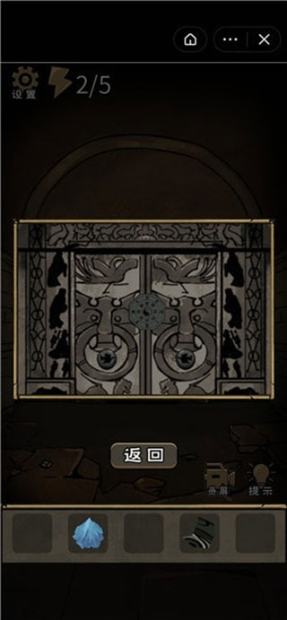 4、跳转场景二,点击大门,将两颗宝珠放到凹槽,得到拼图碎片二。