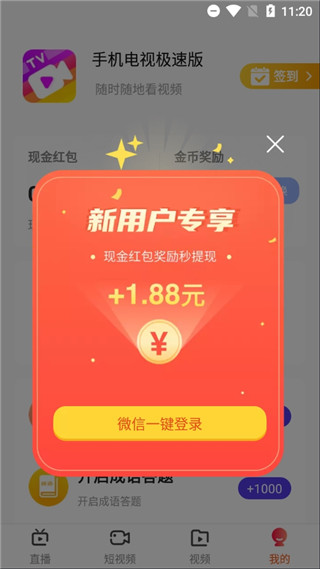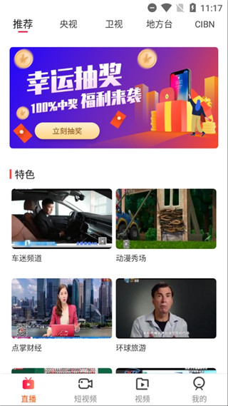 1、在手机电视极速版app的直播页面,就能选择性观看视频