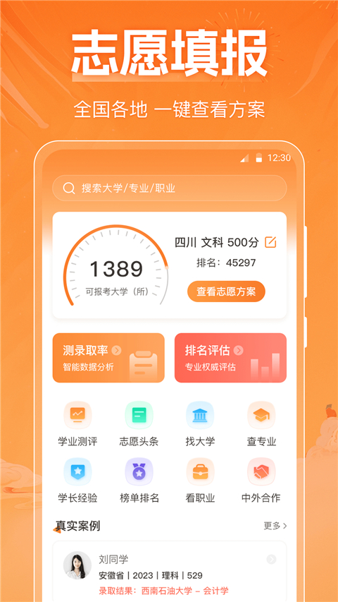 它依托人工智能、大数据以及专家分析,通过个性化定制,为用户推荐适合的大学、专业,还有模拟高考志愿填报和设计填报志愿方案等众多功能等