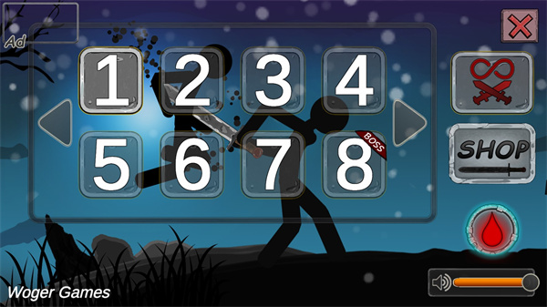 小编在这里建议大家在战斗之前可以点击shop进行购买自己的武器,这样在战斗的时候才会更容易一点,武器有很多,当然这是需要大家使用金币,而金币是要你过关卡才可以获得的;