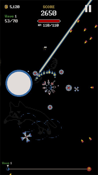环形防御是一款非常经典的街机射击游戏,游戏采用经典的像素画风,不仅保留了像素风格,又使得界面清晰流畅,看起来十分经典怀旧。在游戏里玩家将操纵一艘在太空中飞行的的宇宙飞船,宇宙中常常有流星划过,而玩家则需要抵御它们的撞击。游戏操作非常简单,采用了简易的触控拖曳来操控飞船,此操控能确保玩家可以很精准又快速的移动飞船来瞄准射击目标,武器也会自动攻击,玩起来非常轻松但又不失趣味,但想玩到高分还是不简单的,随着时间的推移,陨石会越来越多越来越快,还是需要一定的操作和反应的。同时,环形防御里面还有大量的的武器可装备到你的飞船上,不过玩家需要注意的是你的行星也是会自动旋转的,所以武器的弹道轨迹随之也会有一些偏转,玩家需要找到合适的角度才能打击到敌人,玩起来还是比较考验玩家的计算能力及智慧。总的来说环形防御游戏并不是传统意义上的弹幕射击游戏,其核心仍然是生存,多类型的炮塔让战斗过程多了几分趣味,对于玩家的操作意识要求还是比较高的,唯一的缺点可能就是有点单一了,不过整体玩起来还是不错的。