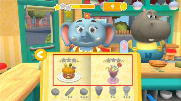 1、挑选制作的美食,顾客挑选菜单中的美食,选择他们喜欢吃的食物,会有反应,不喜欢吃的会摇头