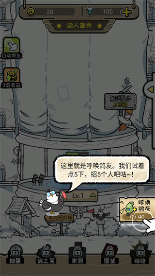 1、这是一款超级好玩又神奇的商业开发游戏,你要培养大量的鸽子出道,成为鸽子明星工厂,你就是每一个成功的鸽子明星背后的人。