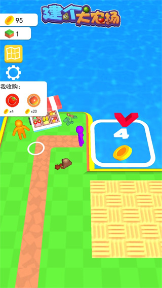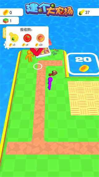 1、首先我们进入建个大农场游戏,操作非常的简单在屏幕上左右滑动来控制人物开始扩大地区;