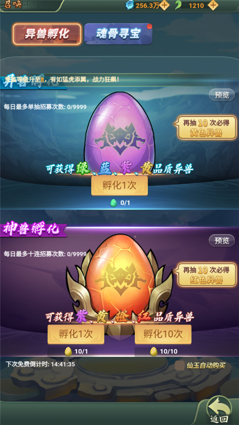 宠物猎人(0.05折资源买断版)一款山海经风格的休闲养成类游戏,该版本里面有着0.05折超爽游戏福利,创角后即可免费专属礼包,其中包含VIP初级头像框、天马、仙玉、十万年异兽箱*3、十万年魂骨箱*3、进阶丹*100、精炼石*100、高级异兽蛋*10,以及海量代金卷无限领!
