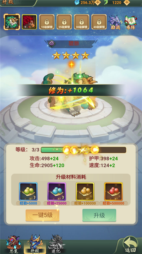 1、【角色培养】升级自己喜爱的萌宠,培养出属于你的最强队伍;