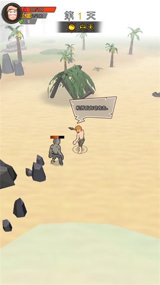1、双击打开荒岛逃生模拟器游戏,玩家可以通过摇杆来进行移动;