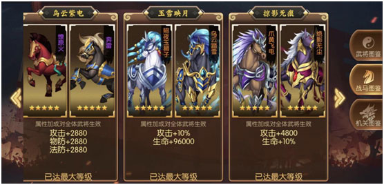 每天过度的存元宝会影响自身的日常发展,并且游戏的战马活动是有周期的,时间间隔接近一个月,一次只能元宝购买60片,即3W元宝。一个五星战马可能需要小V玩家积攒半年多的时间,并且会很难有多余的元宝来参与日常消耗和其他活动。很大概率上,当你有了一只五星红马的时候,别人的战力已经是你的两三倍以上了。所以红马的购买需要考虑到自身的氪金程度,V8以上的玩家可以优先考虑购入红马,不超过V6的玩家,还是应该将大部分精力放在橙马身上。相对而言,橙马的获取渠道多了很多,每日军团可以活跃换马魂,加上日常,每天可以获取3片橙马碎片。加上月基金和很多节日活动的兑换,一只五星橙马基本可以在两个月内毕业。