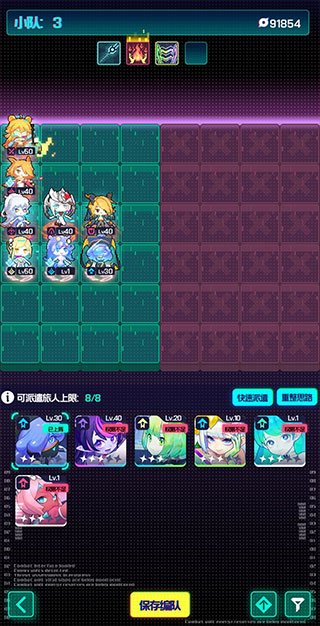 跃迁旅人国际服版是一款视觉上抢眼、游玩上轻手的二次元放置游戏,其整体的美术风格为美式卡通与日系赛璐璐的融合,并参考了扳机社的一些表现形式,采用了大量的红/粉/紫霓虹撞色设计,且饱和度极高,但这些撞色却并不突兀,并且十分贴合其“异星”的背景。与国服版相较而言,游戏有着色彩饱和度较高的配色,再搭配上大面积的色块铺陈,带给玩家极大的视觉冲击。并且玩家仅在美术风格的选择方面,就可以看出该游戏全球化的展望,美式卡通风在欧美地区受到喜爱,日系赛璐璐风以及扳机社式又在亚洲地区很吃得开,这二者毫不突兀的结合可以说达到了1+1>2的效果。同时,游戏的核心玩法是休闲放置+策略自走棋,主要乐趣在于角色收集养成。战前有深度的布局+角色大招设计,以及后期解放双手的放置攻击+跳格子的移动方式,都为这款游戏增色不少。