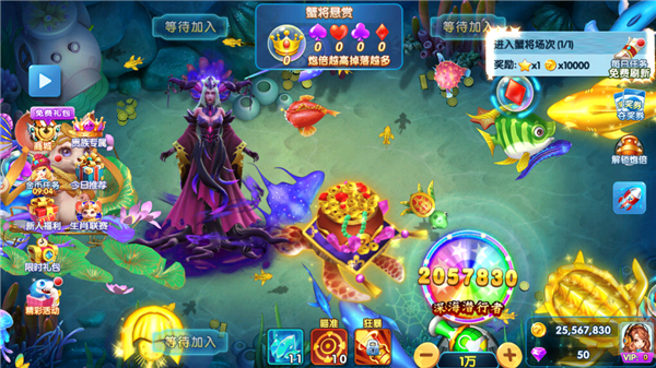 大神捕鱼九游版内置经典鱼场(包含多场景地图)、活动场、神兽场、至尊海皇模式,每一种场景内拥有不同特色鱼种,使用瞄准、狂暴功能助你更好捕鱼,给玩家带来更多不一样的捕鱼乐趣!