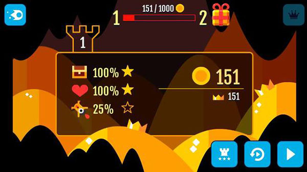 6.宝箱与爱心下,将提升金币的收取。夺得王冠奖励,对于全部关卡赢得最佳表现。分享红龙的技巧,击败城堡守卫者哦!