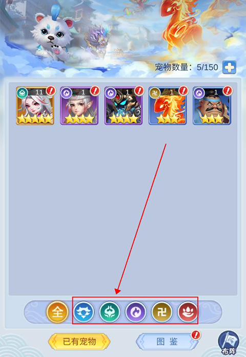 1、游戏内有着天庭、地府、妖灵、神佛、圣巫五种阵营类型,每种宠物都有专属技能属性。