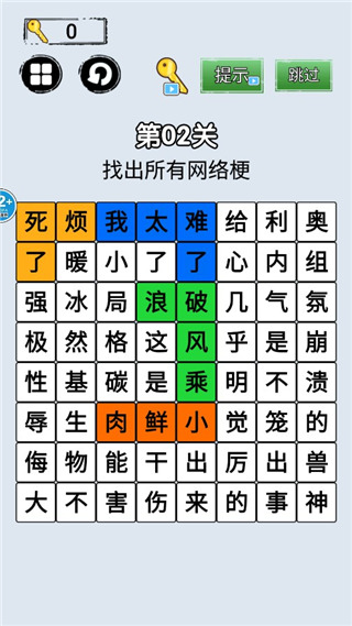 如果你觉得自己的反应速度够快或者手指协调能力够强的话那么不妨来试试火眼金睛游戏,这是一款非常火爆的全新挑战闯关趣味冒险手游,游戏关卡丰富多元化,在这里你不仅可以在有限的时间内找出相应的文字和人,还可以快速将电影以及网络热梗连起来。它考验的是你的知识储备能力,也是你的反应速度和手指协调能力,你需要在它所出现的各种各样的字当中,找到正确的连接成相关的词语,以此来完成一次次的挑战,这对你来说是一次次的积累,也是考验你平时词语积累量的时候。总之火眼金睛游戏玩法非常多,可以给玩家们带来不一样的游戏体验感!除此之外,在火眼金睛游戏中还设置很多的关卡,每个关卡需要将前一个关卡通关后才能继续下一个关卡的体验。喜欢的玩家不妨下载体验一下试试看哦!