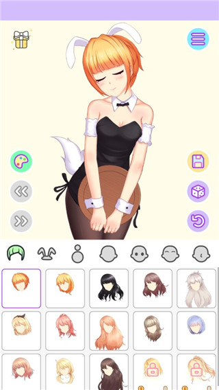 1、提供了各类眉形、发型、衣服、裤子、鞋子、袜子以及各类小的装饰品、背景画面,任意DIY