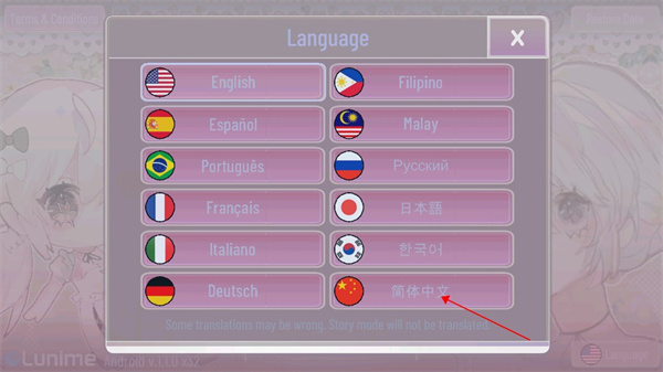 1、首先进入GACHA甜甜官方正版,这里点击右下角language;