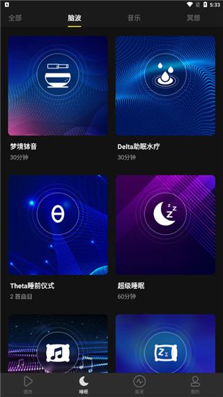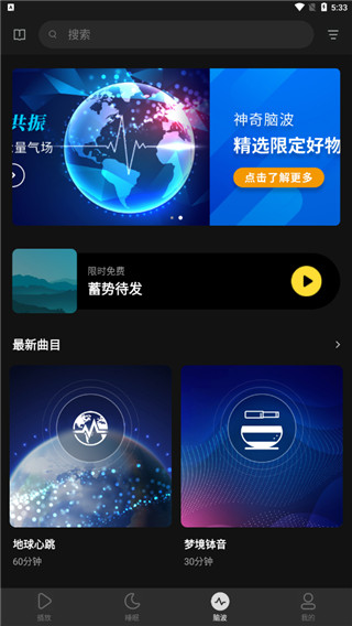 2、进入软件后,首页页面当中有各式各样的脑波音乐推荐,用户可以根据自己的喜好选择。