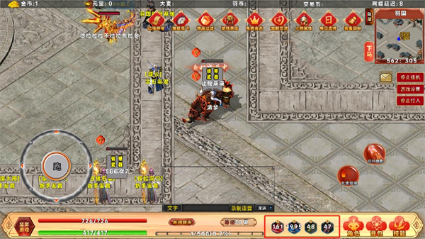 2、右下角四个魔瓶分别为回血,回蓝,随机传送和回城。
