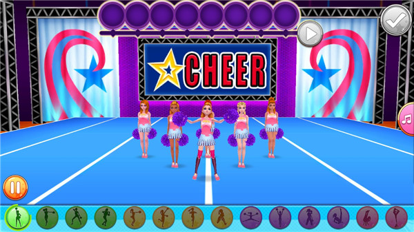1、游戏画面卡通有趣,打造了很多不同的角色形象,玩家可以自由选择,体验精彩的啦啦队表演