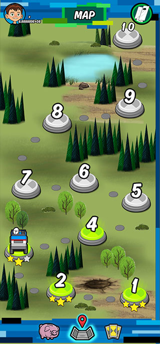 4、地图内有很多未解锁的关卡等待你一一探索,点击“1”开始第一关挑战。