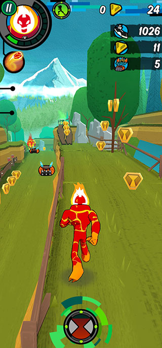 少年骇客超级酷跑的玩法与传统的跑酷游戏一样简单,玩家只需要在屏幕上划动手指左右控制角色改变前进方向,运用外星神秘异能展开速度冲刺,一边躲闪敌人的进攻和巨大障碍物,一边尽可能多的拾取沿路上的金币,不断的跳跃障碍和击败沿途的敌人,直到到达终点!而金币可以购买新的技能装备,还可以进行升级,获取更快的酷跑速度,每一关的还有消灭敌人和奔跑的距离的各种任务要求等待玩家前来挑战,非常精彩刺激!喜欢的小伙伴还在等什么?快来下载试试吧!