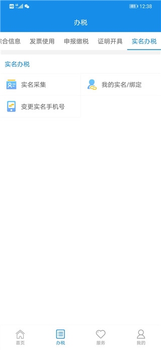 点击【办税】,跳转到办税页面在最底部选择办税模块,点击其中的实名采集