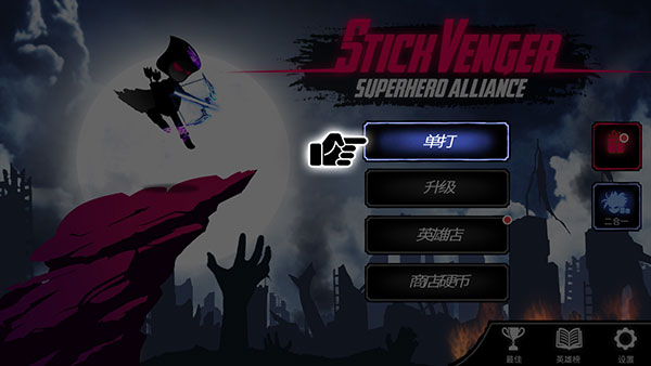 1、下载安装火柴人超级英雄联盟手游,完成安装后直接点击图标打开,进入主界面区域。