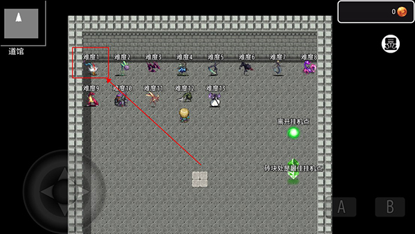5、之后玩家可以选择进入地图冒险获得挂机点挑战,小编前期推荐先进入挂机点刷经验提升等级,挂机点有十五个难度可以选择,前期可以选择1和2,必过。