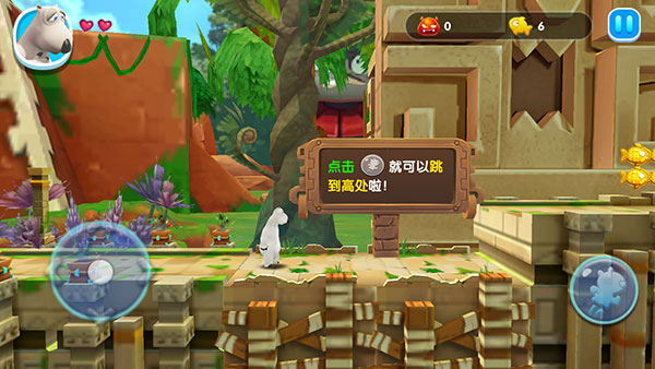 6、左侧控制移动,点击右侧跳跃按钮就可以跳到高处啦。