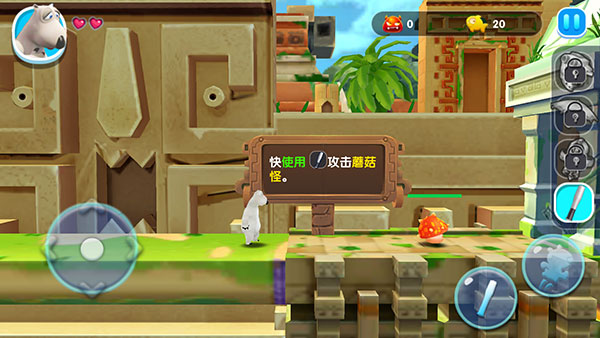 7、解锁武器之后,点击右侧攻击键即可攻击蘑菇怪。