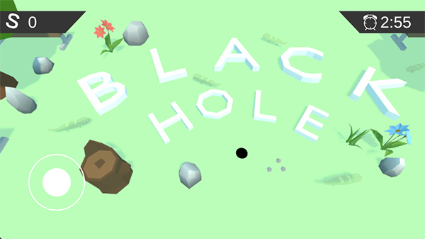 3、通过虚拟摇杆操控黑洞移动,吞噬体积小于自身的物体获得质量增长。