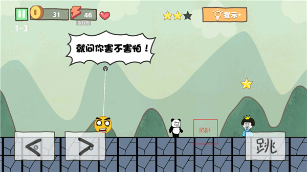 8、游戏第三关中间是有一个晃来晃去的东西,一定要注意不要碰上了;