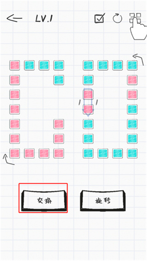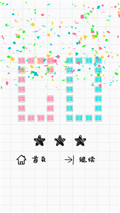 6、当玩家将方块移动成目标样子即可通关,通关后玩家可以点击下一关来进行游戏;