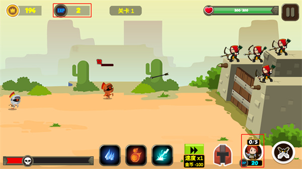 堡垒保卫战游戏中玩家可以滑动屏幕来进行场景移动,通过点击游戏下方的英雄图标来进行英雄召唤,每召唤一个英雄需要消耗一定的经验,游戏下方还有三个技能,玩家可以利用技能来消灭敌人,游戏中英雄还可以进行升级,玩家可以点击上箭头即可进行升级,将所有的敌人击败后即可通关,通关后玩家可以点击下一关进行闯关。