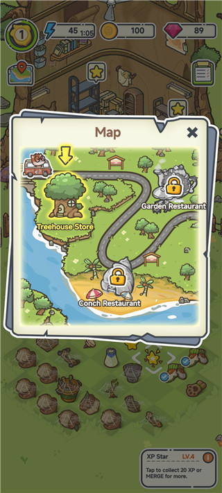 3、通过合并的玩法,来解锁更多的物品,来帮助动物开张杂货店;