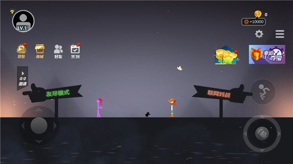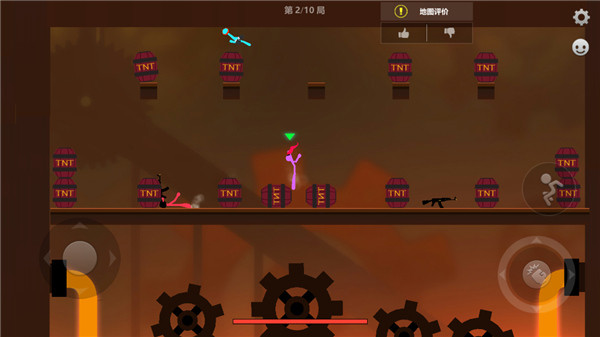 丰富的关卡设计、多样化的战斗机制,还更是融合了王者乱斗、胜则为王、巅峰对决、友尽模式等玩法可供自由选择。在这里,玩家只需控制一个火柴人角色,然后利用各种道具和物理效果进行对其他人进行攻击,再搭配上快捷灵活的走位,快速的判断和反应躲避各种障碍物、避免敌人的攻击,并击败所有敌人赢得战斗胜利。