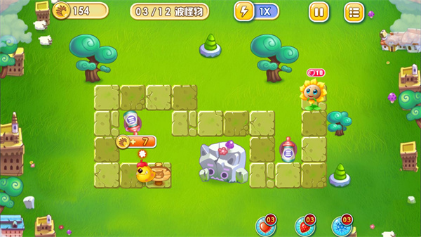 奖杯成就则是游戏的另一种玩法,对于收集控来说,收集金杯以及金色花朵无疑才是游戏的乐趣。在游戏中,花儿要保持无伤的状态才能有金色花朵的奖励,将地图中所有的周边场景消除也才能获得金杯的奖励。这就使得玩家不但需要在阻击怪物的同时也要在空闲时间消除地图中的障碍,节奏非常紧凑,极富挑战性。