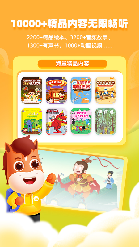 App里有超过10000本国内外经典读物,包括3000多本书籍、4000多个绘本、2000多段音频和1000多个动画视频。内容涵盖大奖经典、习惯培养、科技百科、名著阅读、学科拓展等多个方面,全方位支持孩子的阅读学习。