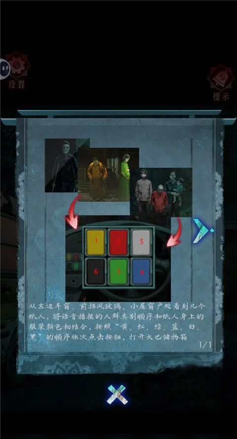 返回车上,从书包里找到纸擦笔。点击宣传牌上的新娘图案,得到“嫁”字和颜色顺序:白、绿、蓝、红。