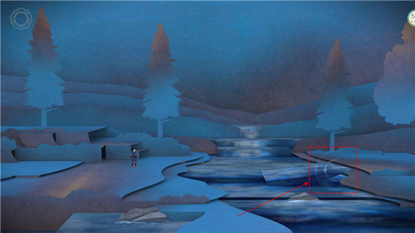 3、在图中有闪光的地方我们都可以点击将其反过来,这个场景我们将闪光的地方翻起来便可以成为桥,然后我们进入走过去进入下一个场景。