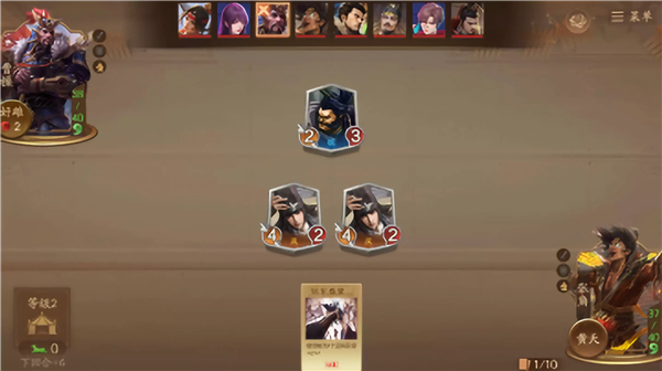 -阵容布置:玩家场上有限定数量的位置摆放武将,通过预先合理搭配武将效果以及位置以求在战斗阶段打败对方。