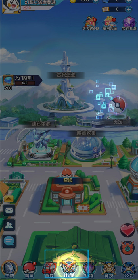 - 创角时赠送初始三只精灵(御三家),签到还能获得传说精灵和装备。