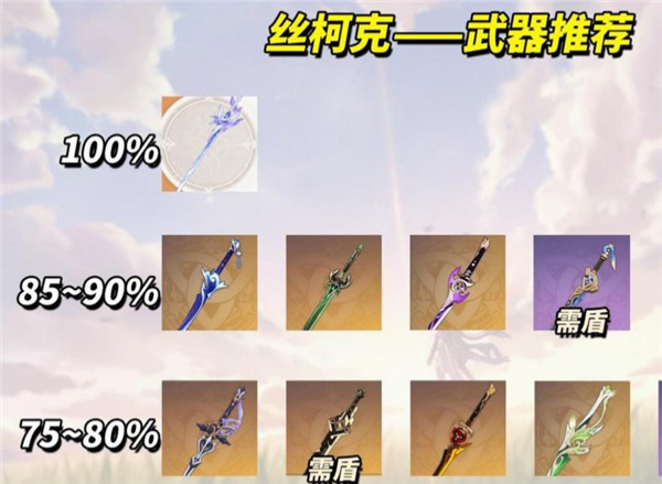 【丝柯克武器期望】苍耀>90%>波乱月白经津>磐岩结绿>雾切之回光>厄水之祸>80~85%>赦罪>斫峰之刃>有乐御簾切>裁叶萃光>黑剑>海渊终曲>75%。