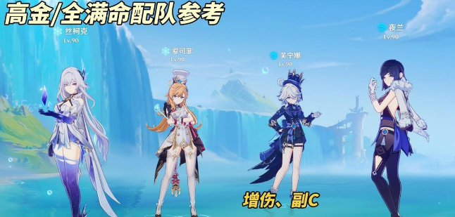 【高金最优队伍】丝柯克+爱可菲+芙宁娜+夜兰/6命申鹤。