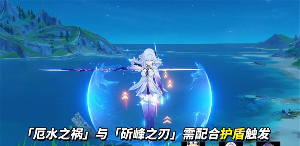 其中「厄水之祸」与「斫峰之刃」需配合护盾触发,推荐队友考虑塔利雅、茜特菈莉、莱依拉等等。在高难环境中,护盾爆裂也是常态,武器数值会有所波动。