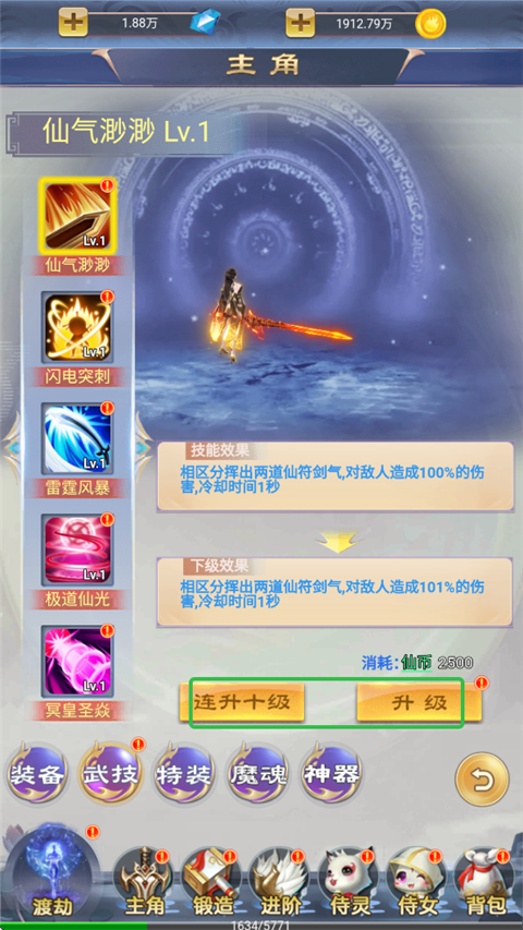 3、升级领取海量仙币、神劫丹、神元丹。