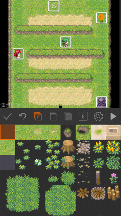 - 新增了循环、天气、分歧、变量、文字显示、地图绘制等功能。图块宽度需为32的倍数。