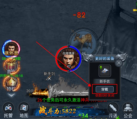 3、玩家打怪就能爆出各种装备,点击就能一键穿戴。