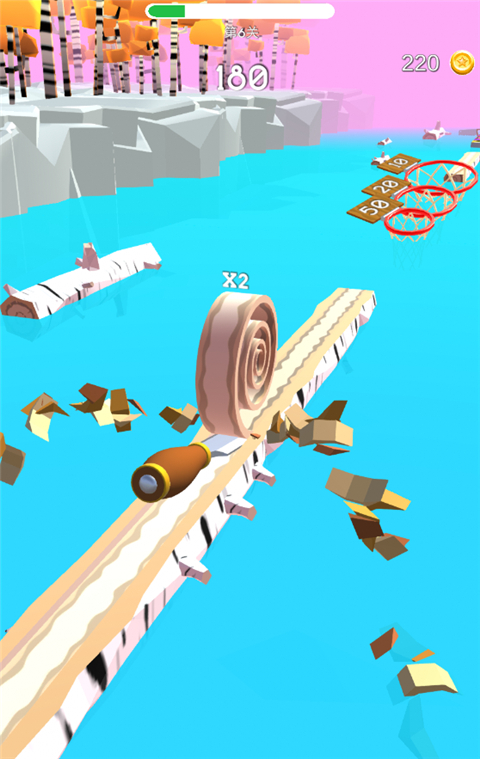 你要时刻注意锯的存在,或者是其他的障碍物,它们会阻挠你前行的步伐,让你变得不能像以前一样快乐。游戏卡通界面,丰富你的生活,打发你的碎片时光,解锁新的成就,连木屑都十分的逼真,模拟程度非常强。每一个关卡中木头的路径都是比较窄的,在锲子不断前进的过程中,会有电锯将木头切断,注意躲避。轻松灵动的音乐,趣味玩法,每一次闯关成功都会获得星星奖励。